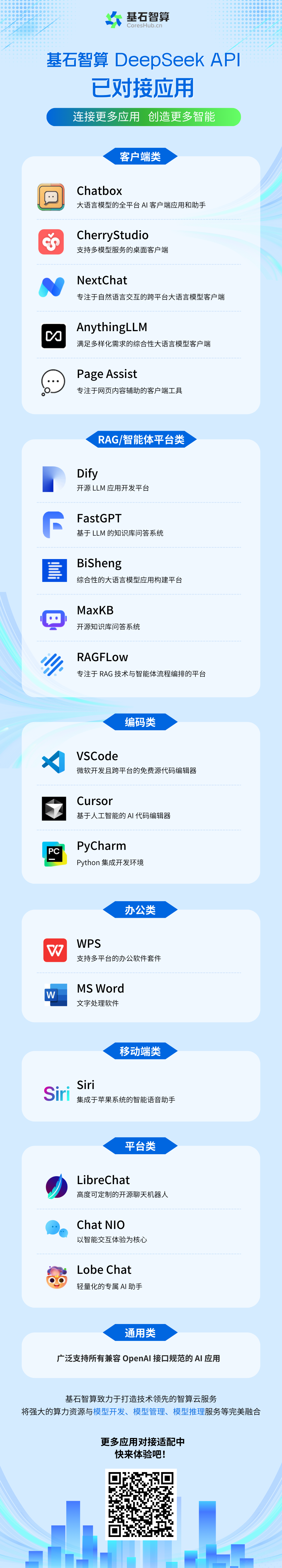 借助高度标准化的平台,基石智算CorsHub 与各类应用深度集成,帮助用户持续打破 AI 创新的技术壁垒,实现应用的智能化升级与业务效率的提升,并带来快速交付的便捷体验,让用户获得可无限平滑扩展的能力,从容应对未来多样化的需求。