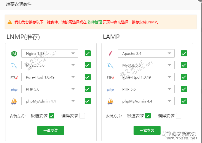 综合来说短期测试选极速安装,长期运行选编译安装。