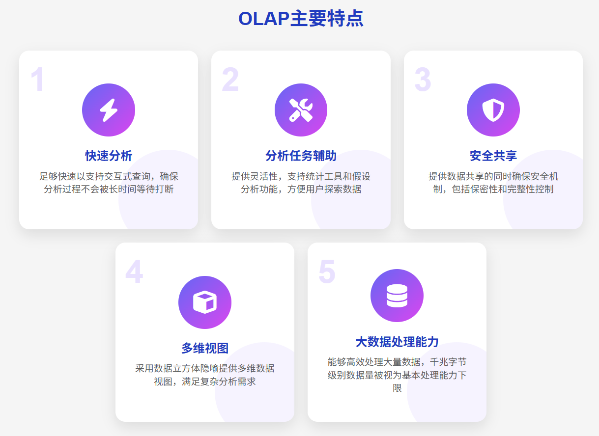 OLAP 的主要特点包括: