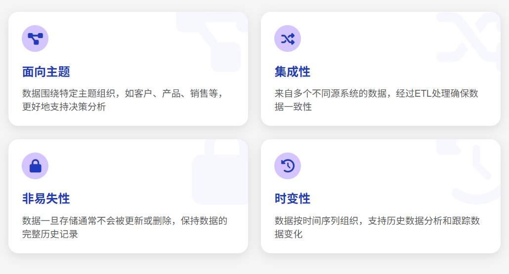 数据仓库具有以下几个关键特点: