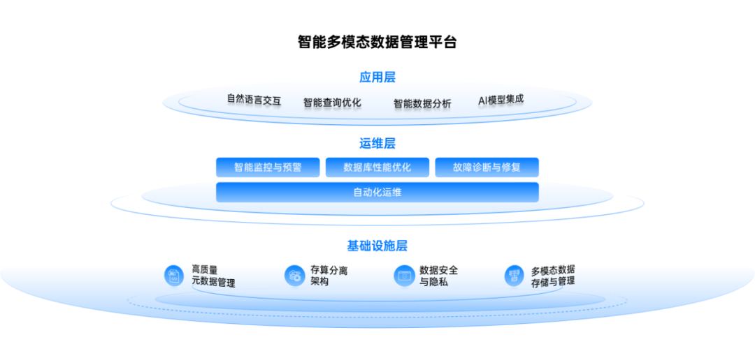 传统运维更多依赖于有经验的DBA专家对数据库进行调优。多模态数据管理平台的运维层,将借助AI技术重构数据库运维体系,从被动响应转向主动治理,打造“自感知、自修复、自优化”的智能运维生态,显著降低人工干预成本。核心能力列举如下: