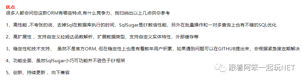 SqlSugar:高性能、高生产力,超轻量级的DotNet Core ORM。