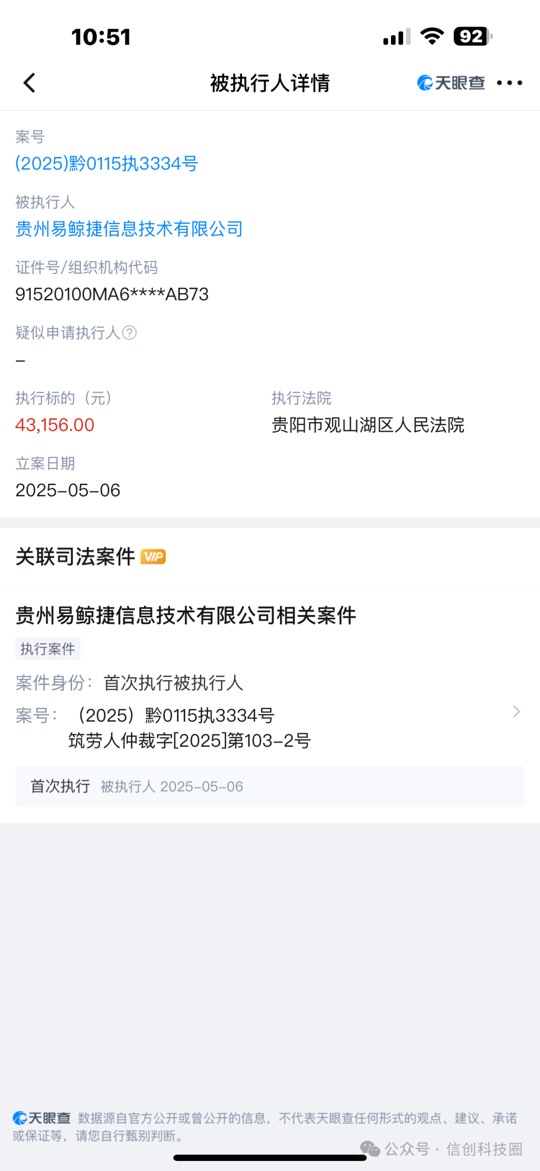 2、员工仲裁,易鲸捷失联,仲裁委公告送达,贵阳观山湖法院强制执行,43000余元也支付不起!
