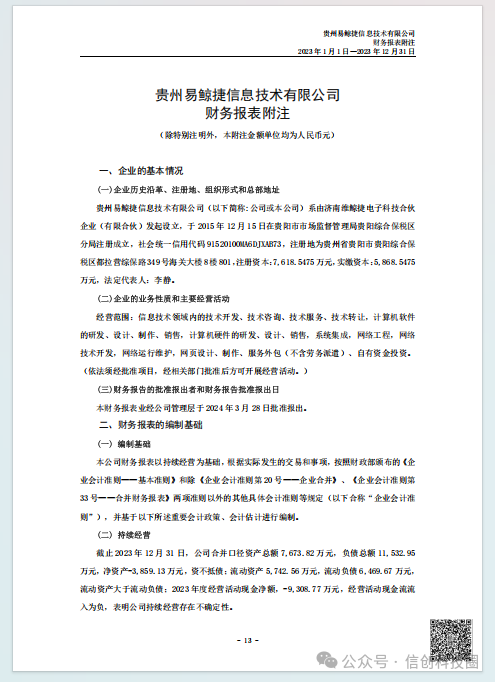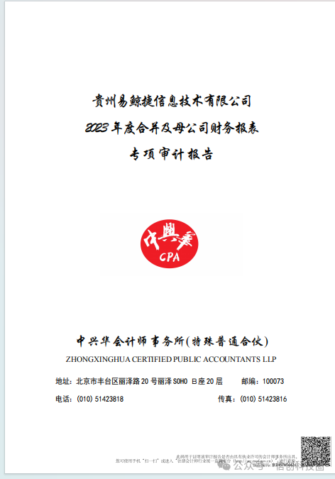 中国软件在2023年对贵州易鲸捷审计报告即载明:贵州易鲸捷资不抵债。