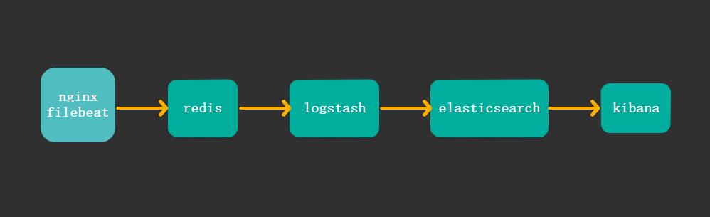 之前做的ELK的环境,只用了logstash作为收集日志的agent,而logstash消耗系统资源很大,在生产环境下将logstash作为agent和服务跑在一起并不理想,今天有空闲时间,在自己本地对原来的结构做了调整,收集日志的agent采用轻量的filebeat,并且中间使用redis进行数据写入的缓冲,整体架构如下图