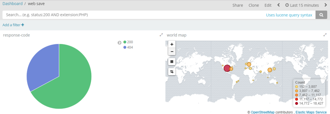[root@nginx-filebeat ~]# while true; do ip=$[$RANDOM%223+1]; curl --header "X-Forwarded-For: $ip.33.22.100" http://192.168.2.141/test$ip.html; sleep 2;done