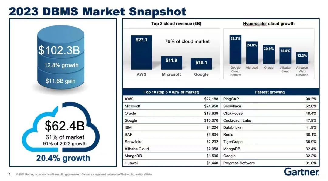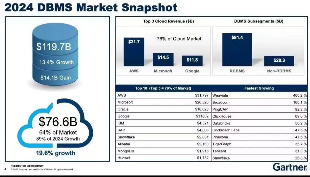数据来源:Gartner 2023-2024 DBMS市场报告