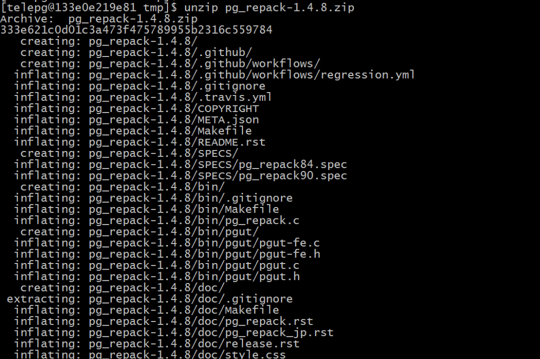 解压pg_repack安装包: