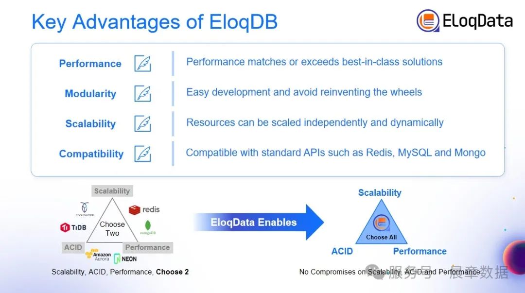 EloqKV 是一款 全功能的分布式 ACID 事务型数据库,完全兼容 Redis API,并借助 ScyllaDB 提供以下核心优势: