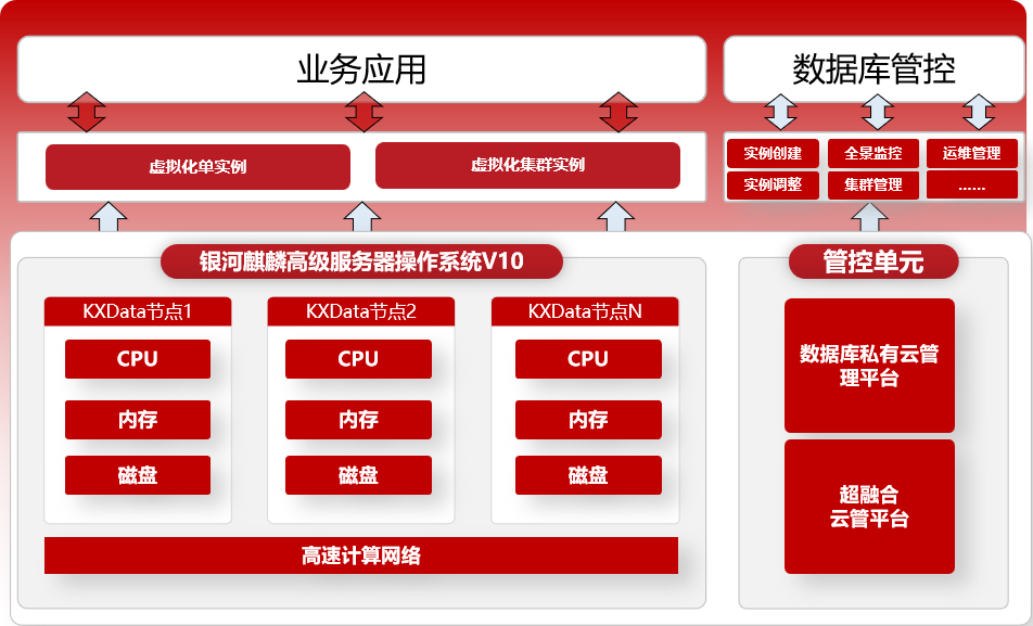 全栈支撑,智能运维:从laaS层到PaaS层,再到业务应用层,KXData实现了数据库的全生命周期管理。通过高速计算网络和超融合云管平台,数据库实例得以快速创建与灵活调整;而数据库私有云管理平台,为用户提供了便捷的管理工具,让运维更加简单高效。