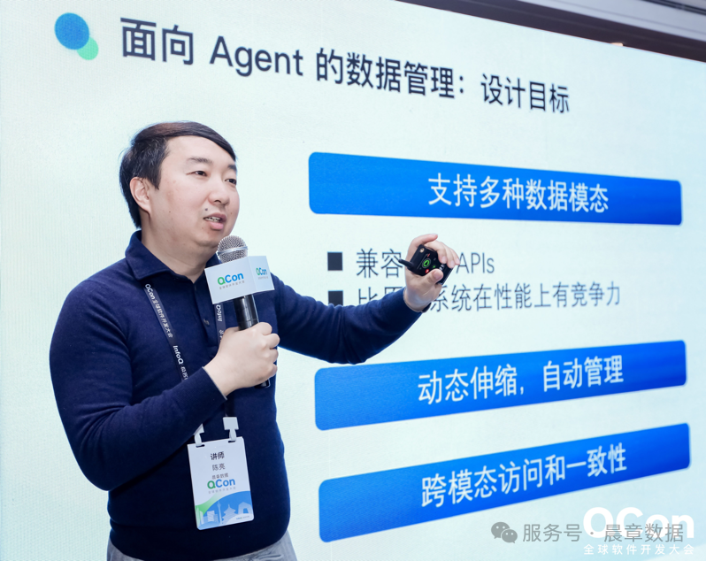晨章数据创始人、首席架构师陈亮博士出席并发表题为《面向 AI Agents 的高性能数据基座:架构和工程实践》的主题分享,介绍晨章数据团队关于 AI 时代数据基座架构的思考,探讨如何通过该架构解决 AI 原生应用的数据挑战,以及如何在云计算、新硬件环境下实现高性能数据基座的工程实践。
