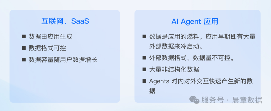AI Agent 驱动的应用在早期即面临传统大厂才有的数据挑战,数据飞轮在 AI Agent 时代迭代更为迅速,加剧了数据库系统的压力。