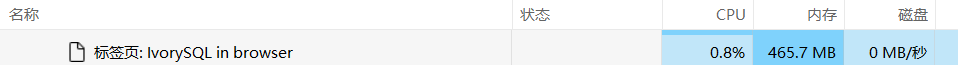 通过任务管理器可以观察到,IvorySQL 在浏览器中的运行对 CPU 和内存的占用较为理想。