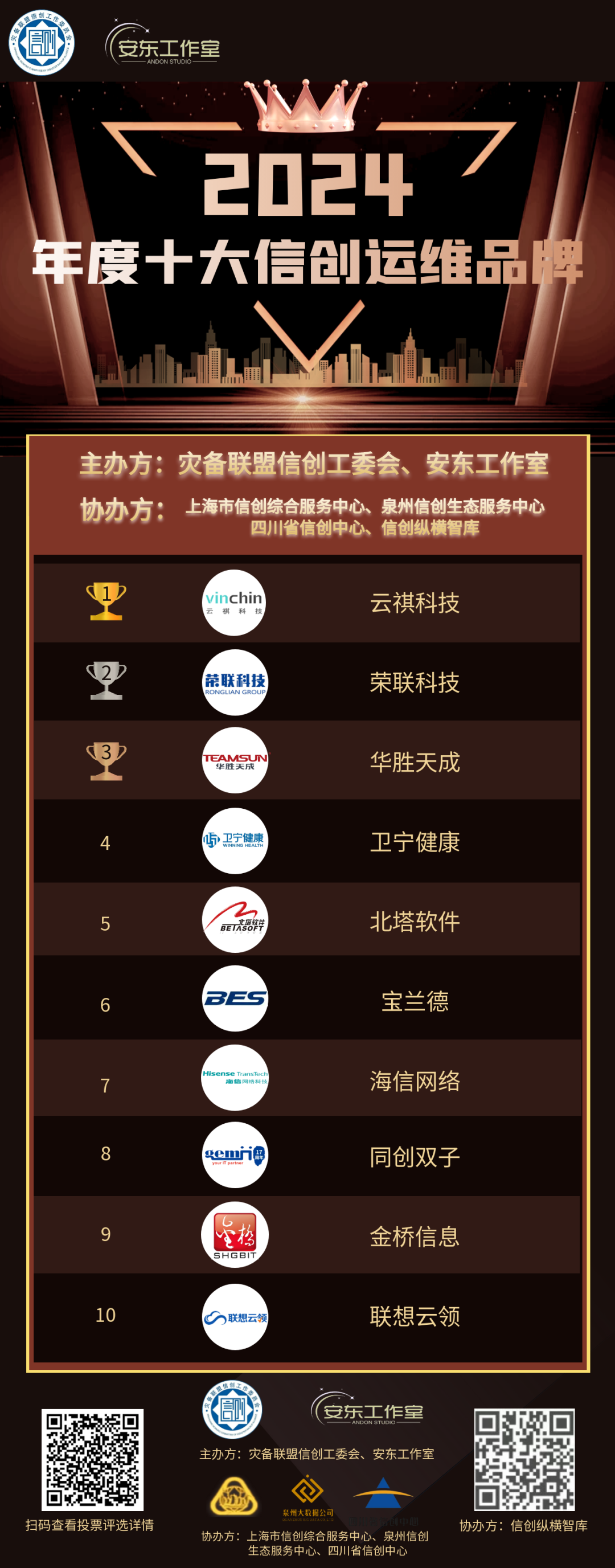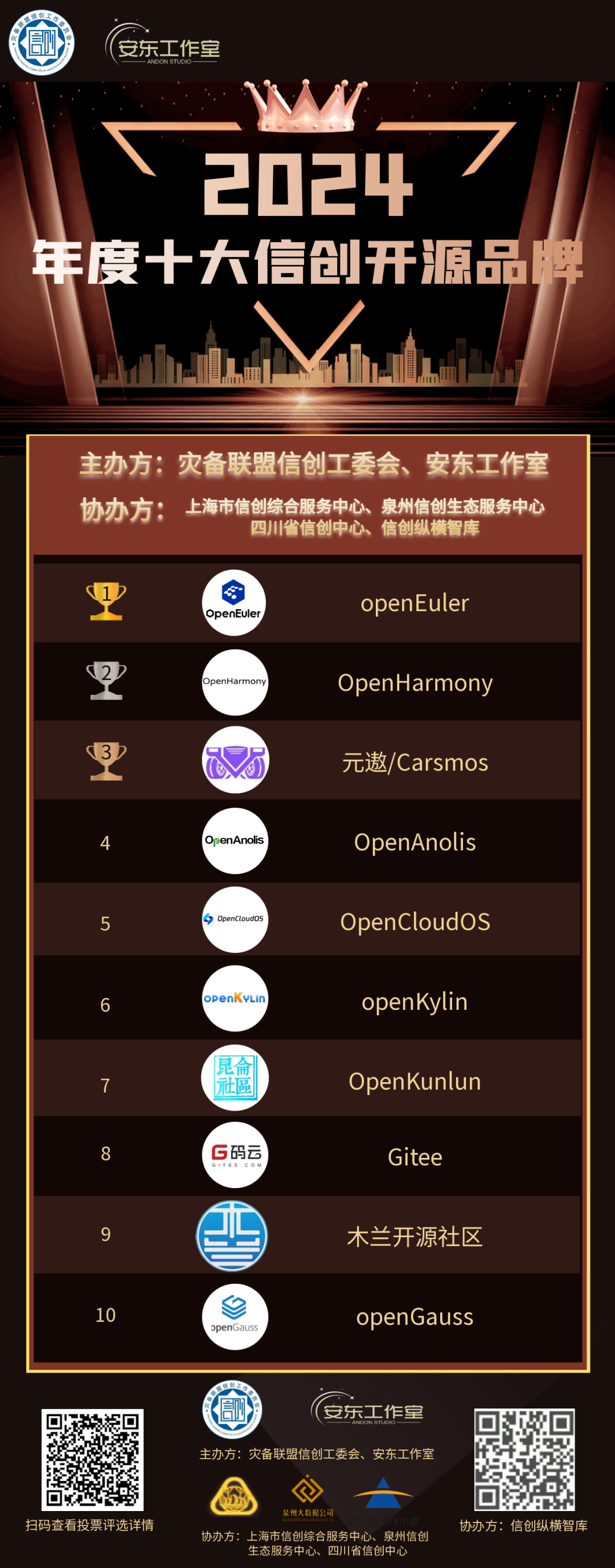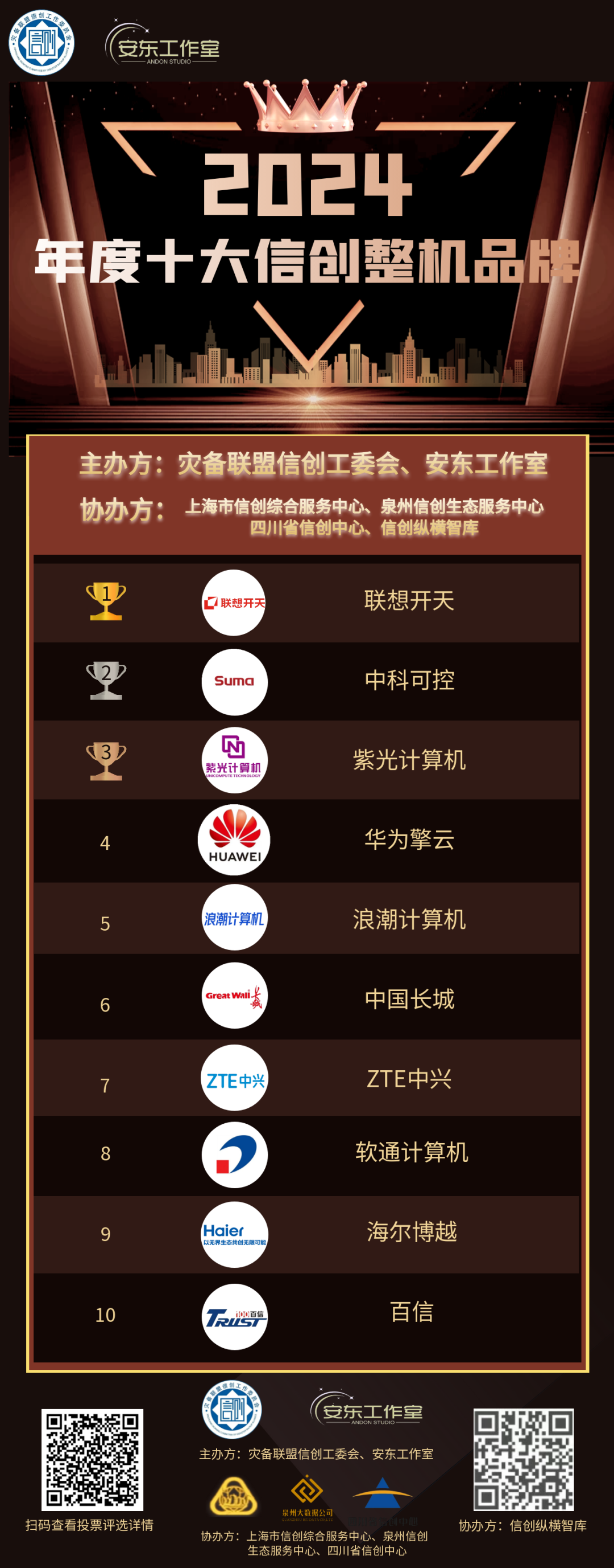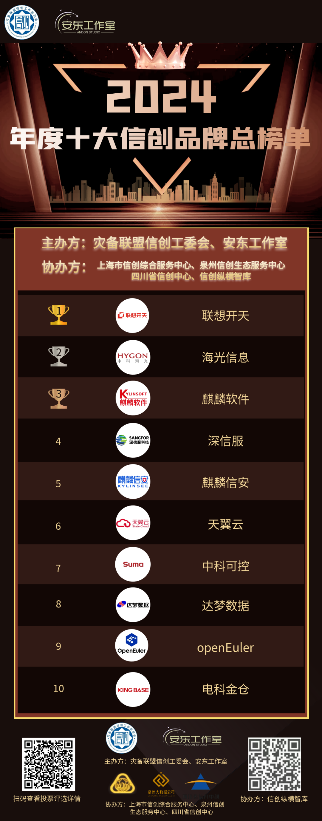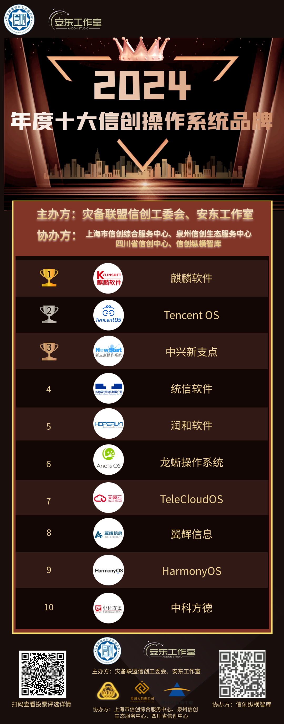 此次评选活动,得到了上海市信创综合服务中心、四川省信创中心、泉州信创生态服务中心、信创纵横智库等协办方的大力支持。在此,一并表示感谢!
