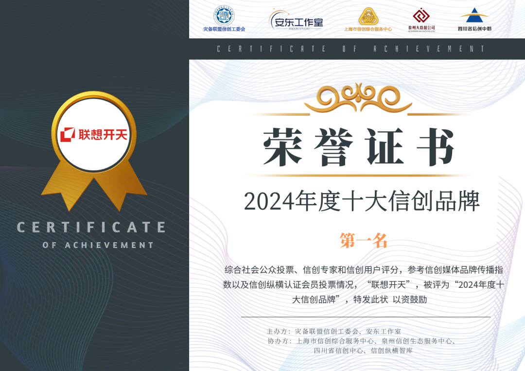 以下是2024年度十大信创品牌总榜单介绍: