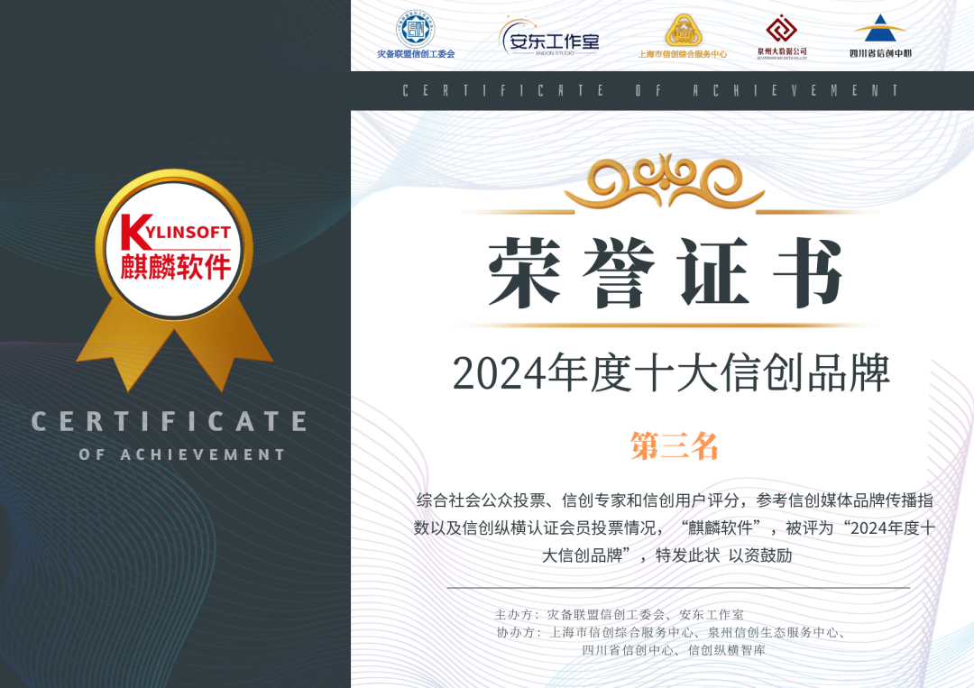品牌综合得分:737(总票数)+380(信创专家平均分)+360(信创用户平均分)+280(信创媒体品牌传播指数:优)+280(信创纵横认证会员投票数)=2037
