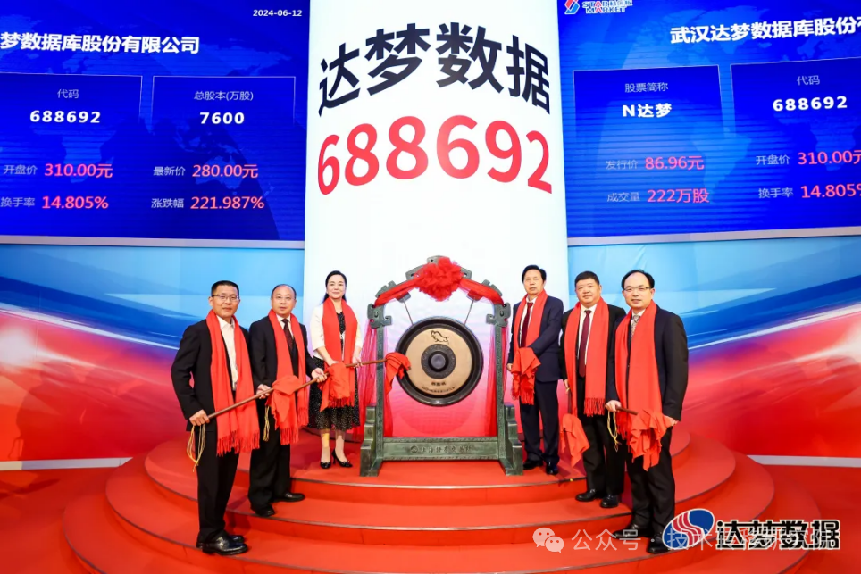 2024年6月12日,武汉达梦数据库股份有限公司(股票简称:达梦数据;股票代码:688692)成功在上交所科创板挂牌上市,标志着国产数据库领域迎来了里程碑式的“第一股”。此次IPO发行价定为86.96元/股,开盘后股价飙升超过200%,市值迅速突破210亿元。