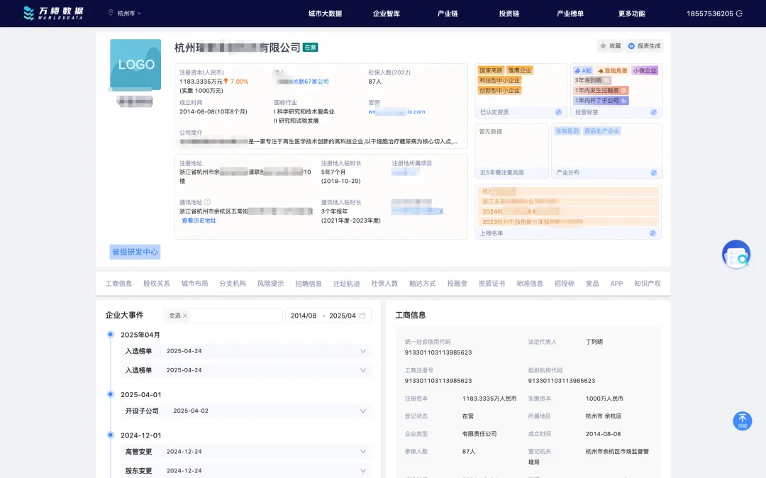 在企业详情页中,万楼数据整合了企业社保人数变化、招聘发布趋势、融资节点、分支机构扩展等指标,帮助项目快速识别经营波动显著的企业。这类企业,要么正在扩张、场地吃紧,要么在收缩、考虑转租,都是极具转化可能的潜在目标。