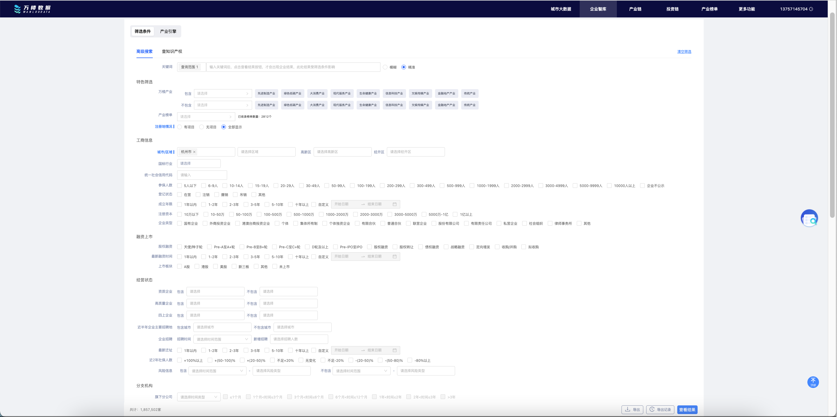 通过系统中的“企业资质标签体系”,招商人员可按如下方式快速组合筛选: