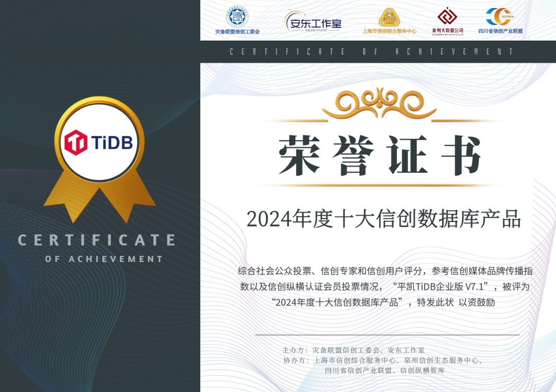 平凯TiDB企业版V7.1是由平凯星辰(北京)科技有限公司于2023年7月正式推出的企业级原生分布式数据库产品。该产品具备数据强一致、水平弹性扩缩容、金融级高可用、实时HTAP等特性,能够同时处理事务和分析查询,帮助企业实时获取洞察并快速响应市场变化。此外,平凯TiDB企业版V7.1还提供了丰富的企业级配套工具,如数据迁移工具、备份恢复工具、监控诊断工具等,提升了数据库的管理效率。在安全性方面,该产品提供了包括数据加密、访问控制、安全审计等在内的多层次安全保护措施,确保企业数据的安全性和合规性。在信创项目中,平凯TiDB企业版V7.1已广泛应用于金融、运营商、能源、医疗、电力、政企等行业用户的关键业务系统,助力企业加速数字化转型。