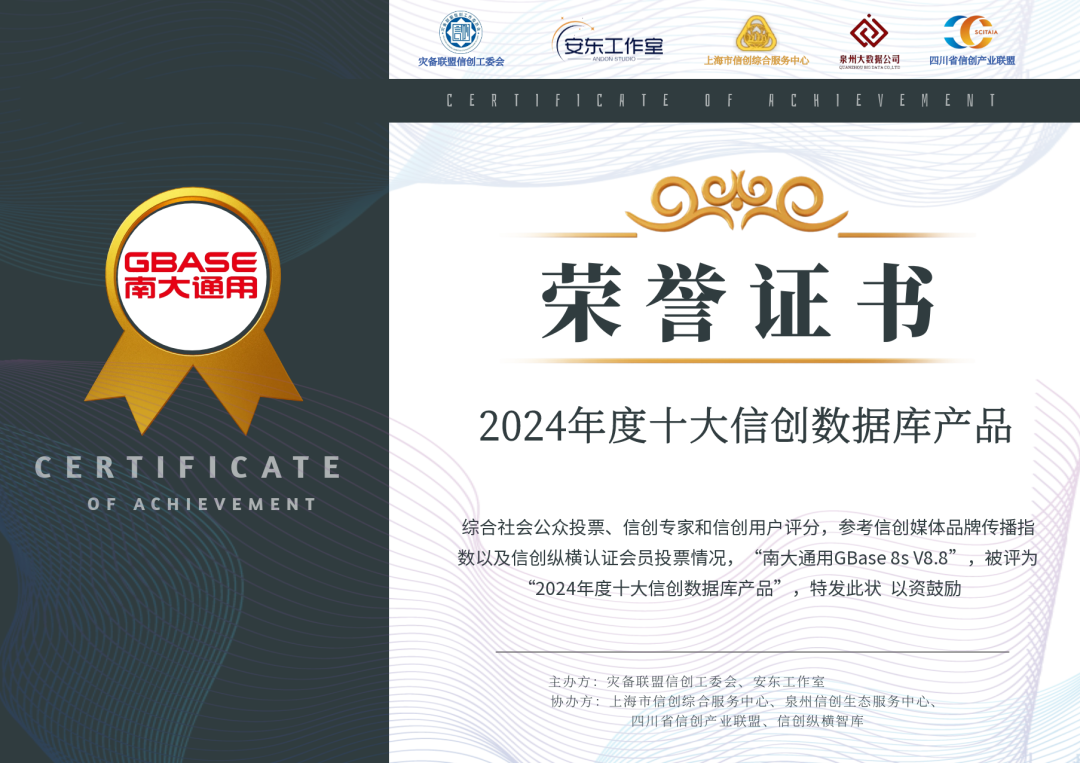 南大通用GBase 8s V8.8是由天津南大通用数据技术股份有限公司推出的集中式事务型数据库,于2024年正式推出。该产品具备高容量、高并发、高性能等特性,支持国密算法和多种国际数据库规范及开发接口,达到国标第四级安全标准。GBase 8s V8.8适用于OLTP应用场景,包括金融、电信行业的关键核心业务系统,以及党政、国防等行业对信息安全要求较高的信息系统,能够提供7*24小时不间断运行处理能力,在80%以上场景中可替代国际主流数据库。在信创项目中,GBase 8s V8.8已成功应用于金融、电信、政务、能源、交通、国防、企事业等领域,为上万家用户提供了安全、稳定、可靠的数据存储和管理服务。