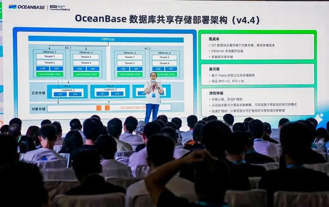 整体来看,OceanBase 的存储成本以共享存储成本为基线,相较于传统架构可显著降低成本。基于该架构的 Shared Storage 设计,数据在扩缩容过程中无需进行数据搬迁,计算节点的扩缩容相比以往更具弹性与敏捷性。