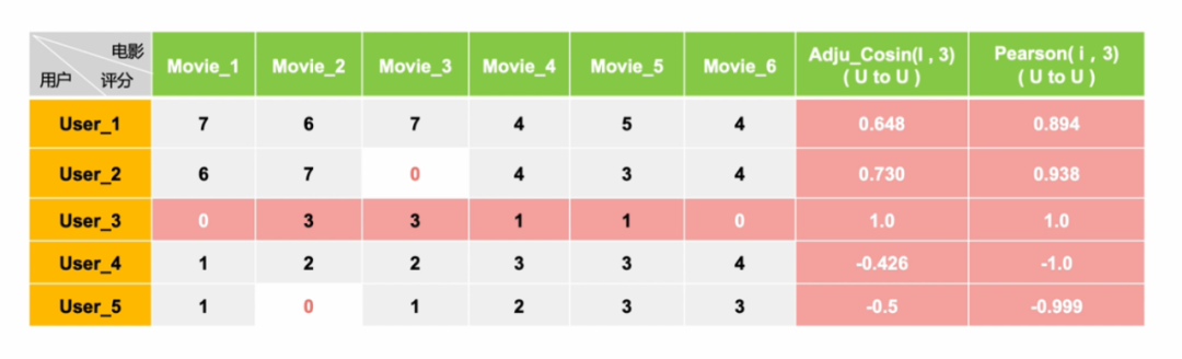 皮尔逊相关度与调整余弦相似度的区别-代码验证(数据集)