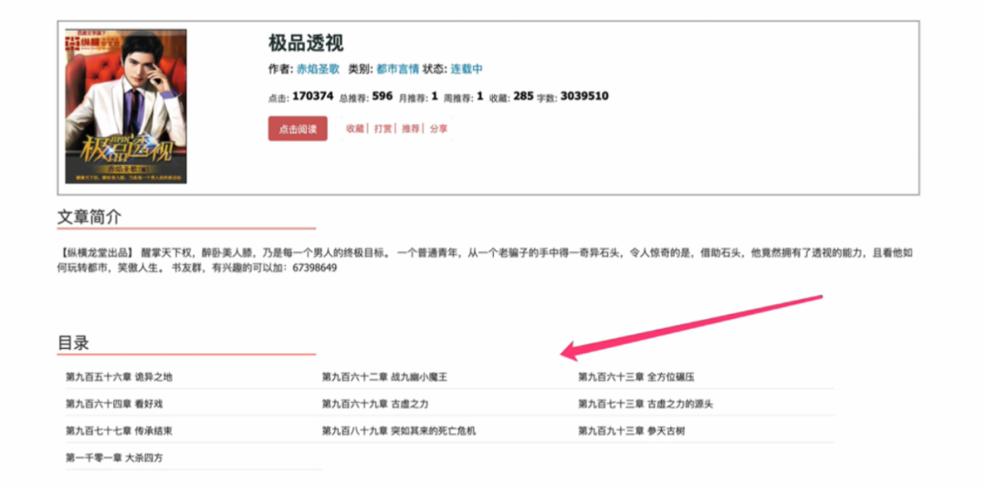 详情页数据由两个部分组成:novel和novel_detail。之前的novel信息已经导入ES ,现在我们要导入novel detail信息,并且只导入novel_detail的章节信息,其他信息不导入。
