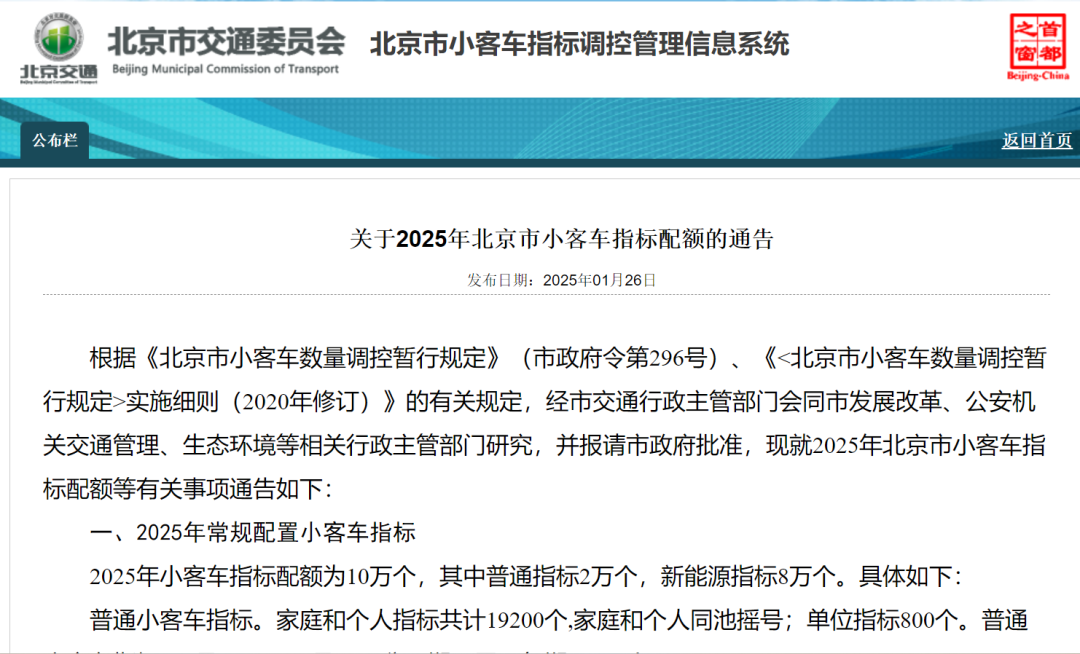 除了常规的10万个小客车指标配额外,北京将于5月26日面向无车家庭定向增发4万个新能源小客车指标,