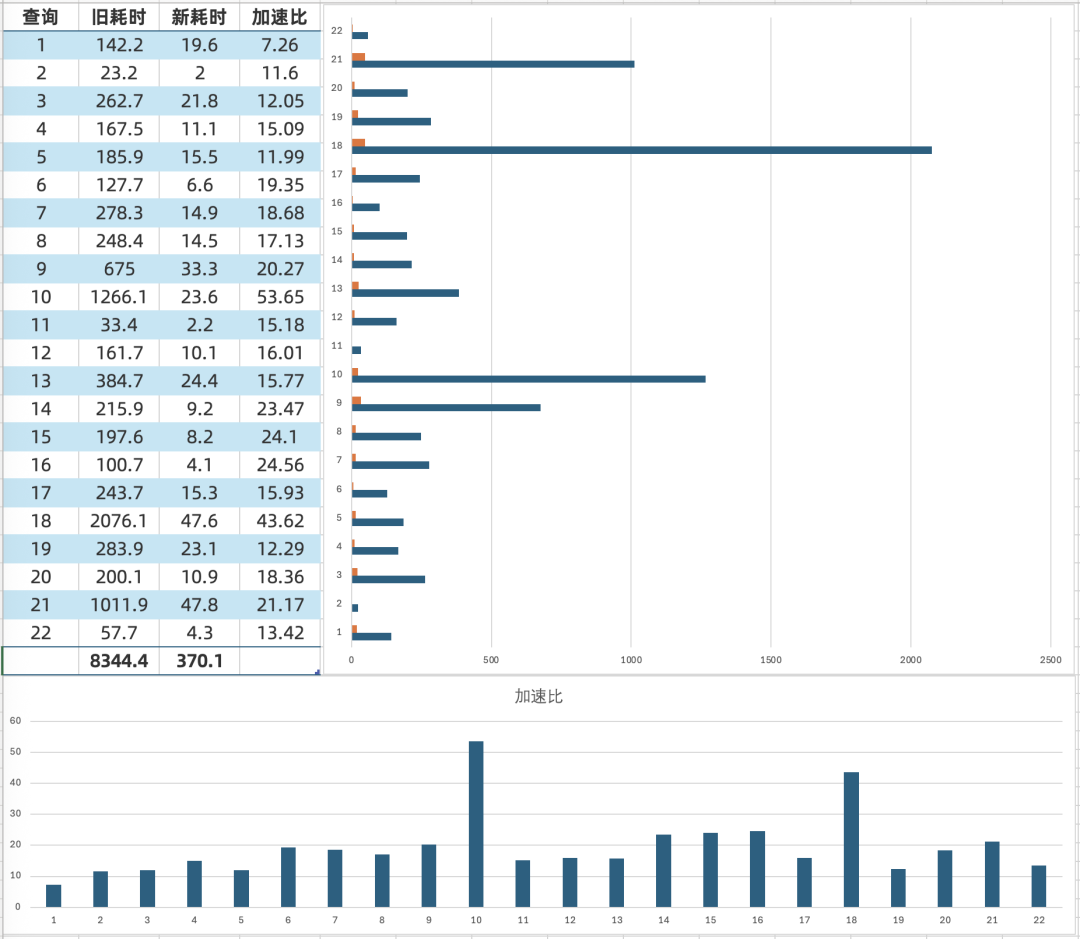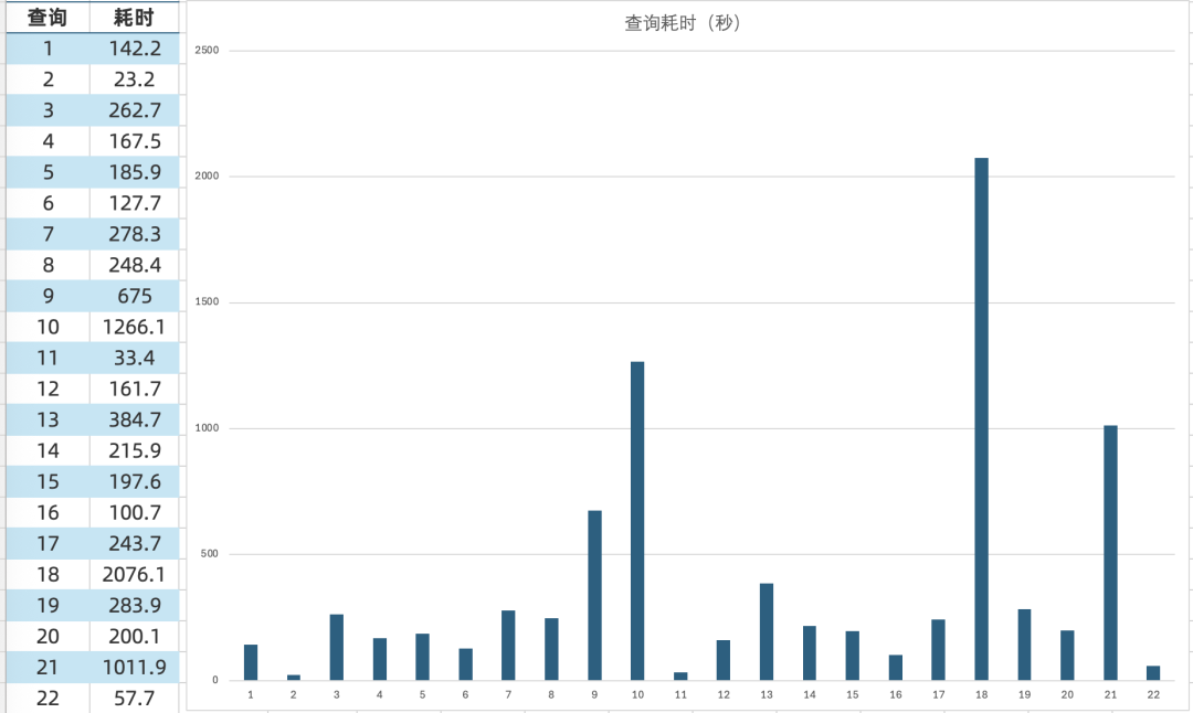 下面列出了每个查询的耗时(单位:秒):