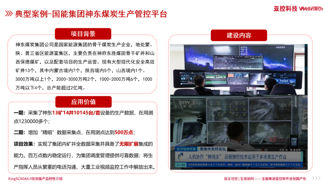 分布式架构支持百万级点位采集,已在国家能源集团神东煤炭(500万点)、苏州吴江再生水(15万点)等项目中成功验证。