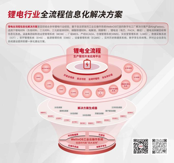 在“双碳”目标驱动下,锂电行业正加速向智能化、绿色化转型。亚控科技基于自主研发的工业云操作系统WellinOS4.0与数字工厂管控平台KingFactory应用系统,推出覆盖锂电材料生产全流程的智慧管控平台,直击行业痛点,为锂电企业提供数字化转型驱动的升级方案。