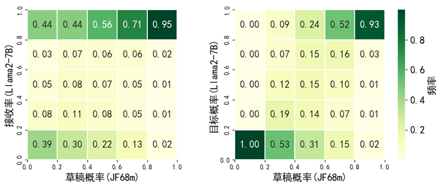 为满足此约束,不应与显著偏离。然而,对于具有较大草稿概率的标记,不能过小,否则会对产生显著贡献。另一方面,低的标记对散度影响较小,允许更大波动。上述分析表明:统计意义上,具有较高草稿概率的预测标记对应更高的目标概率和接受率。