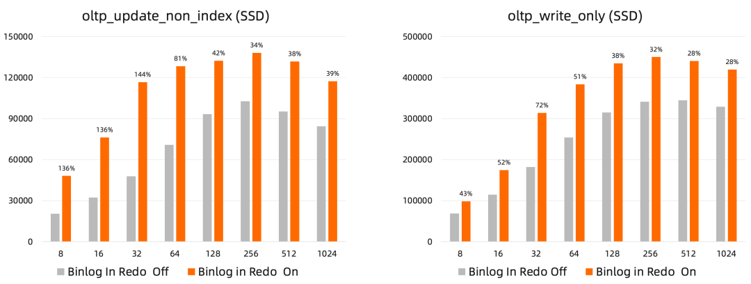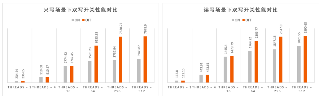 InnoDB通过双写机制保障数据页原子性,防止半写错误;因此,每次数据页的刷新都涉及两次写操作,这增加了磁盘I/O负载。在高写入场景,InnoDB的双写机制就成为了性能瓶颈。AliSQL 具备全链路的16K原子写的能力,可安全关闭InnoDB双写机制。在降低了I/O写入量的同时,还简化了刷脏过程,大幅度降低云存储的IOPS及带宽需求,提升实例写性能。