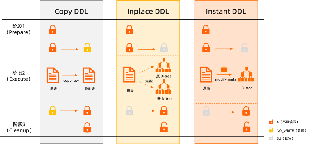 在社区 MySQL 各版本对 DDL 改进的基础之上,AliSQL 团队对 DDL 做了更进一步的优化,让 DDL 操作更快、更稳、更安全。