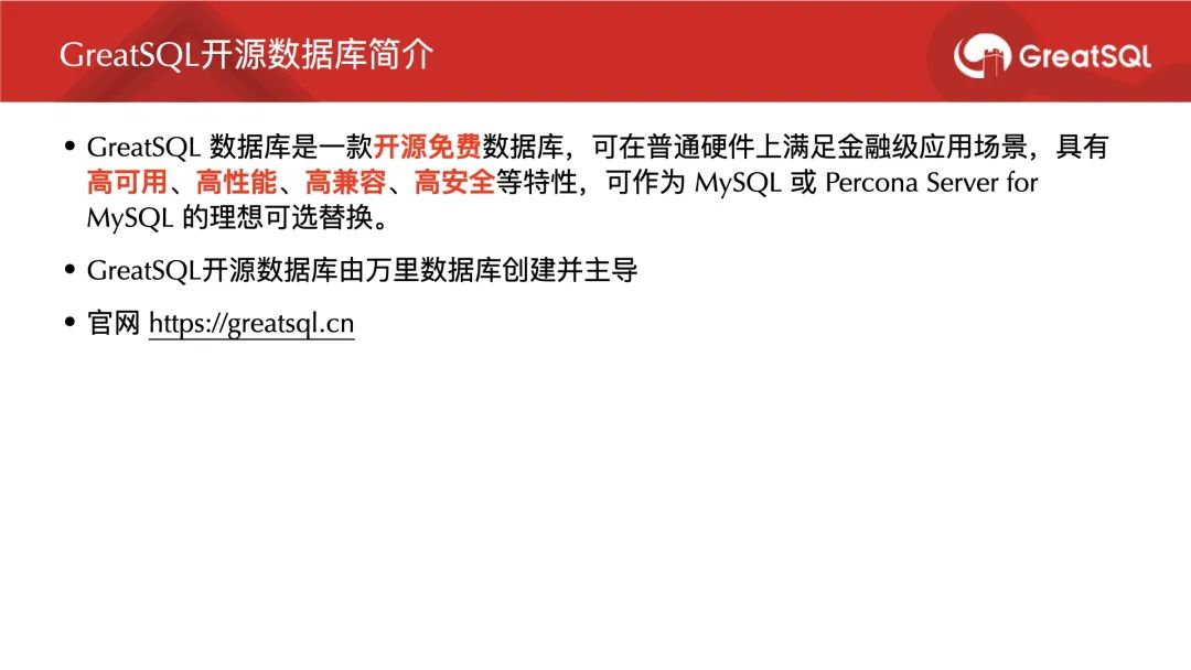 在 MySQL 生态的 “中国战场”,GreatSQL 开源分支正在冉冉崛起。作为万里数据库主导的开源项目,其定位清晰 —— 100% 兼容 MySQL,兼具金融级高可用与高性能,成为企业级场景的理想替代。
