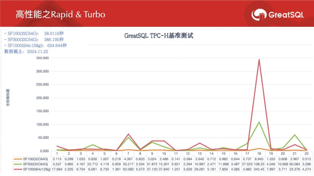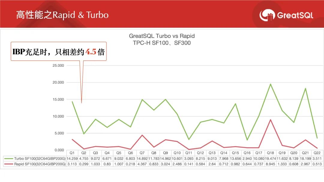 高性能:HTAP 场景的极致突破 独创 Rapid 与 Turbo 引擎,重新定义 OLTP 与 OLAP 性能边界: TPC-C 性能提升 30%,TPC-H 最高提升 200 倍; 数据压缩比达 6-8 倍(如 SF100 场景 InnoDB 数据文件 184GB,Rapid 仅 28.7GB); 线程池 + 无锁化事务系统,高并发下性能稳定性领先 MySQL 40% 以上; 可以利用Rapid和Turbo引擎,借助主从复制或MGR,快速实现HTAP架构部署。