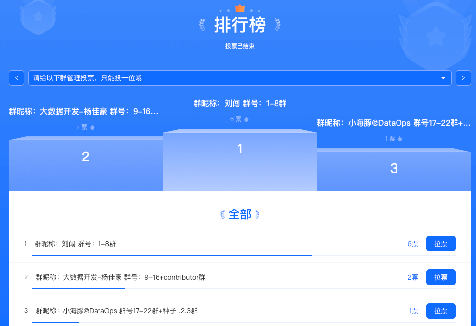 Apache DolphinScheduler社区答疑Star第四期评选活动圆满完成啦!本次活动旨在表彰那些长期为社区用户提供专业解答、积极推动技术交流的社群管理员。经过社区成员的公开票选,在25个社区群中共有3位表现突出的管理员获得最多投票。让我们热烈祝贺以下获奖者(按排名顺序):