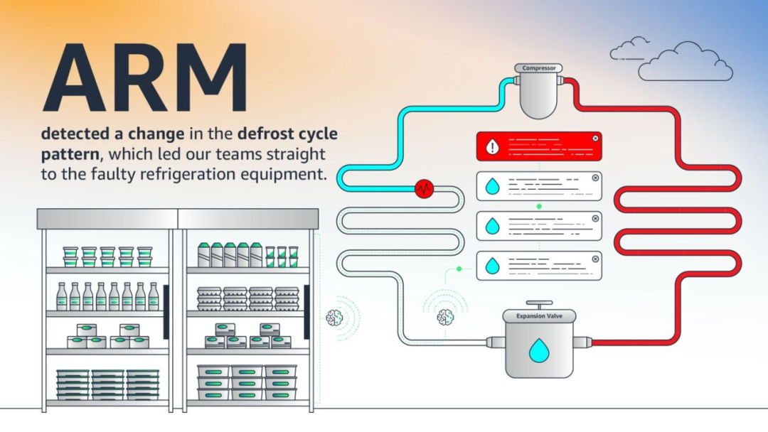 亚马逊还开发了另一款AI工具——智能冷链监测系统(ARM),可对物流中心的冷藏设备进行实时监控,确保生鲜食品始终处于合适温度。ARM会分析制冷设备的能耗数据和运行模式,持续追踪产品温度,预测可能出现的设备故障。