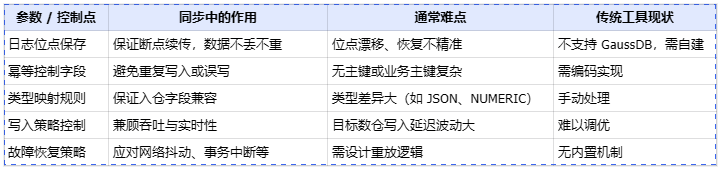 基于以上关键控制点,GaussDB 的数据同步面临以下具体技术挑战: