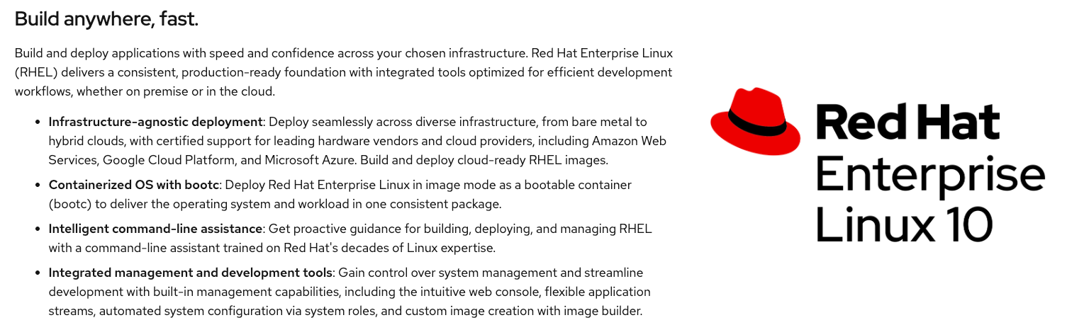 2025 年 5 月 13 日,Red Hat Enterprise Linux 10(RHEL 10)正式发布,标志着企业级 Linux 操作系统进入全新纪元。本次更新聚焦于系统精简、安全强化和云原生支持三大核心方向,特别值得关注的是 ISO 镜像体积从上一代的 13.26GB 大幅缩减至 7.88GB,降幅达 40%!