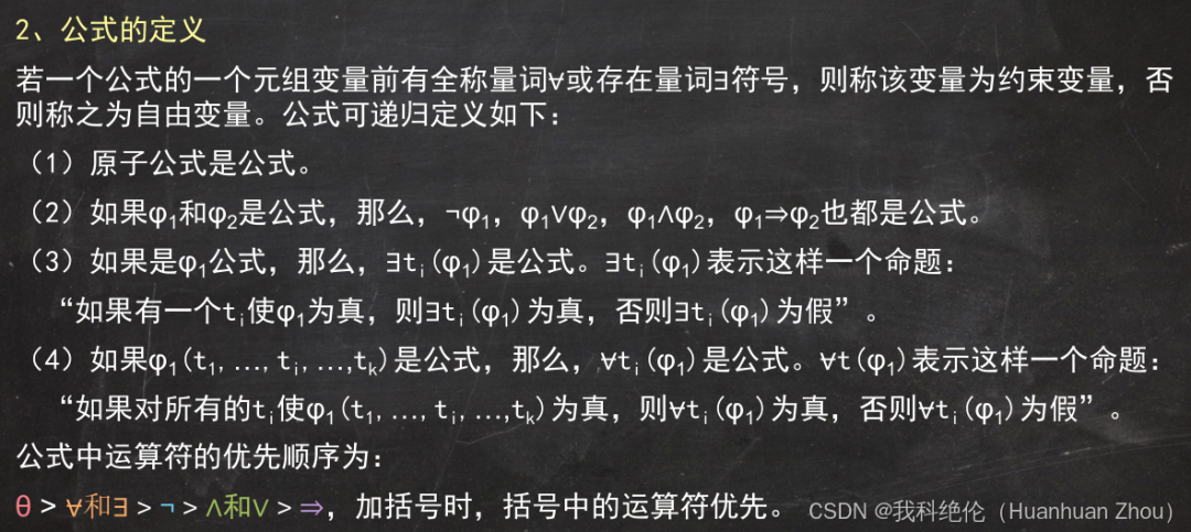 • θ > ⩝和∃ > ¬ > ∧和∨ > ⇒,加括号时,括号中的运算符优先。