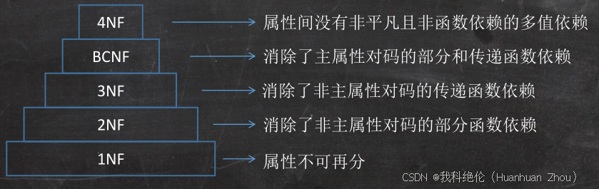 • 注意:如果只考虑函数依赖,关系模式最高的规范化程度是BCNF,如果考虑多值依赖,关系模式最高的规范化程度是4NF。