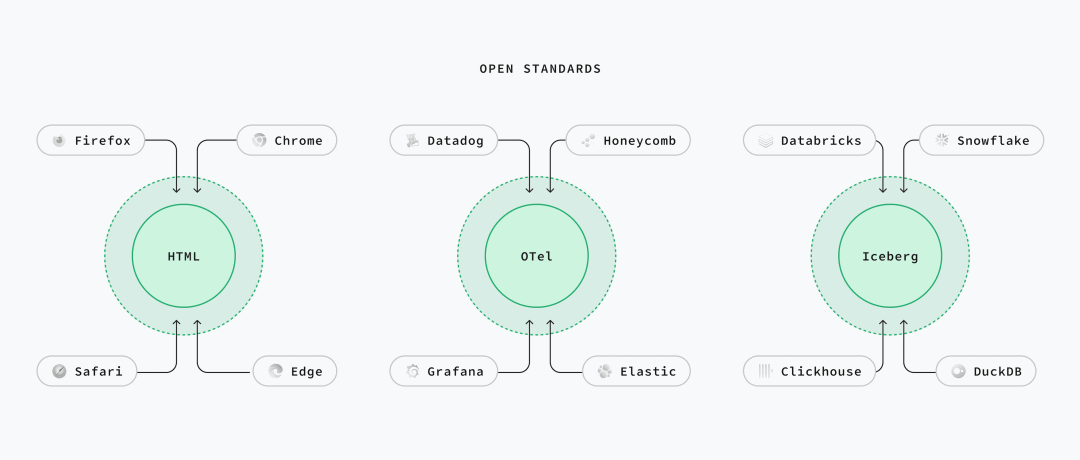 Postgres[1] 基本已经是事实标准;OTel[2] 和 Iceberg[3] 尚在成长, 但它们具备当年让 Postgres 走红的同样配方。常有人问我:“为什么最后是 Postgres 赢了?” 标准答案是“可扩展性” —— 对,但不完整。