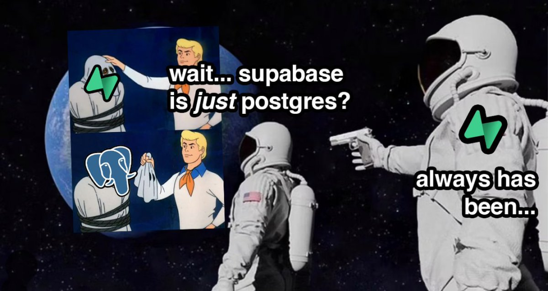 不同的是,我们不止做 Postgres(虽然梗图[37]挺火)。我们还提供 Supabase Storage[38],一套兼容 S3 的对象存储。未来,Supabase 聚焦的不是“一个数据库”,而是“所有数据”: