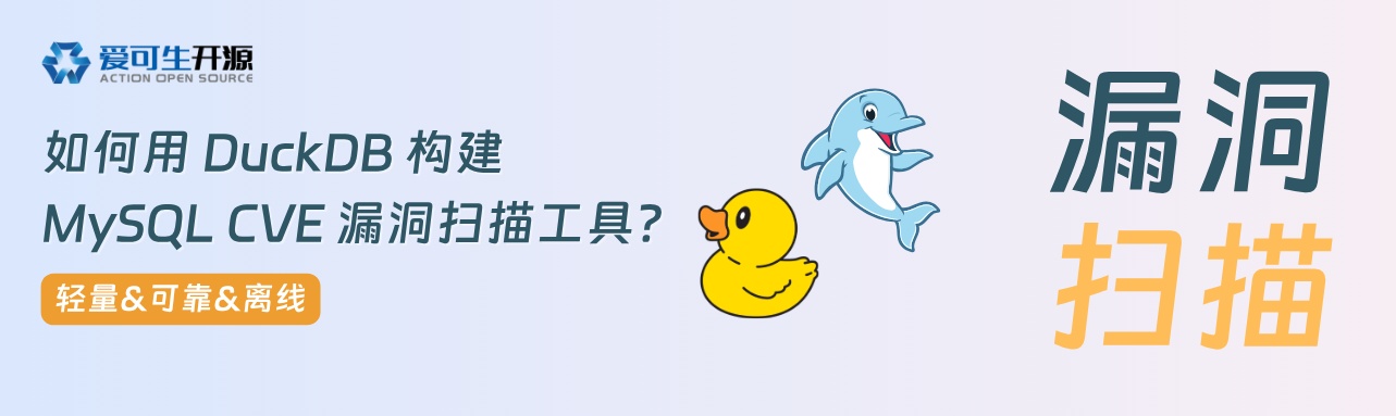 今天我分享一个如何用 DuckDB 构建极简漏洞筛查工具,实现 MySQL CVE 信息的离线本地化查询与报告生成,无需依赖商业化漏洞扫描工具,适合 DBA 自查自用。