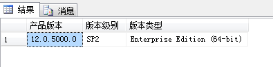 SELECTSERVERPROPERTY('ProductVersion') AS '产品版本',SERVERPROPERTY('ProductLevel') AS '版本级别',SERVERPROPERTY('Edition') AS '版本类型';