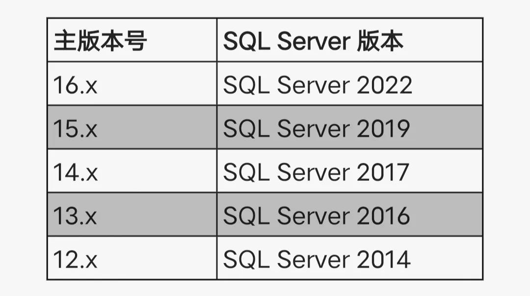 - 通过版本号可快速判断 SQL Server 的发布年份及功能支持。