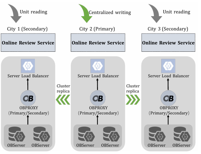 在评论服务的业务中,多点写入虽引入数据冲突和复杂度挑战,却提供更好的容灾能力。因此,本文决定采用集中写入和单元读取的方法。OceanBase采用集中写入架构,所有写入操作集中在中心节点处理,简化架构并减少数据重叠问题。集中写入后,数据可通过单元读取访问,使架构更简洁,无需担心数据重叠。