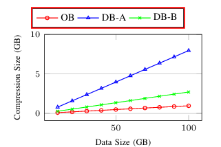 不同系统在数据集大小变化时的压缩大小